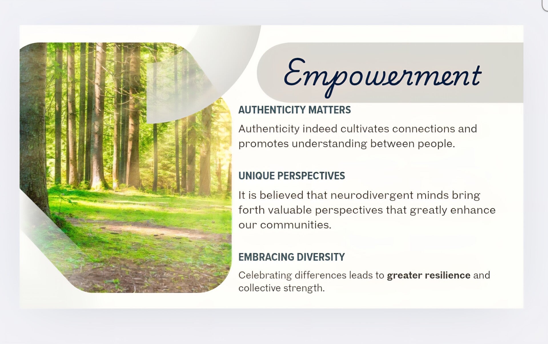 After exploring our story, we hope you feel our unwavering passion for inclusion and authentic support. We genuinely care about empowering neurodivergent individuals and their families. Our commitment is to foster a society where neurodiversity is celebrated, understood, and supported, ensuring every person can lead a tranquil and fulfilling life. We are here to help you grow and succeed.